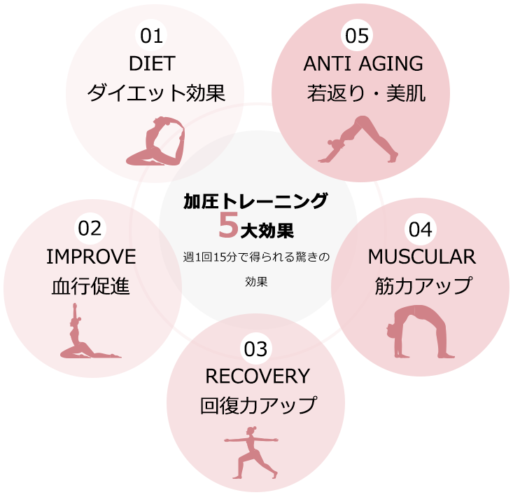 加圧トレーニングによってもたらされる効果の中で、代表的な5つを紹介します。